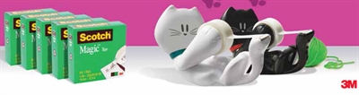 3M SCOTCH 810 MAGIC TAPE 5 PACK 19MMX33M ROLLS + BONUS KITTY TAPE DISPENSER