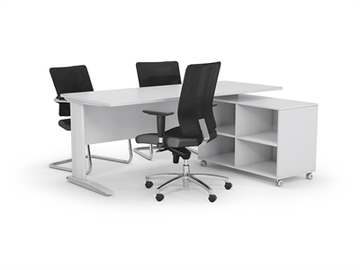 AERO DESK PACKAGE DESK + CADDY + 1 ARC TASK CHAIR + 2 ARC VISITOR CHAIRS