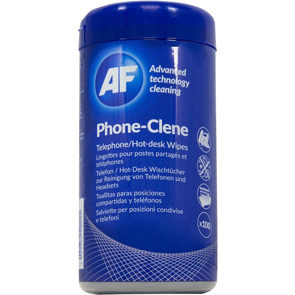 - Resealable tub of 100 telephone and hot-desking wipes for cleaning handsets