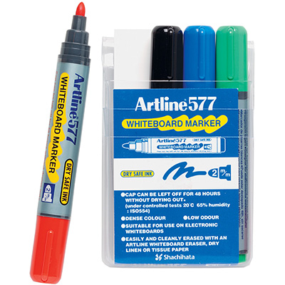 ARTLINE 577 WHITEBOARD MARKER BULLET 3MM ASSORTED WALLET 4