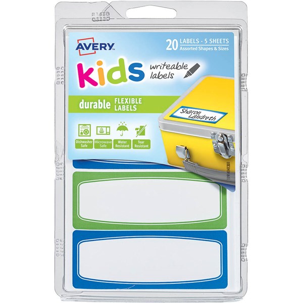 AVERY 41413 KIDS WRITEABLE LABELS RECTANGULAR ASSORTED BLUE/GREEN PACK 20
