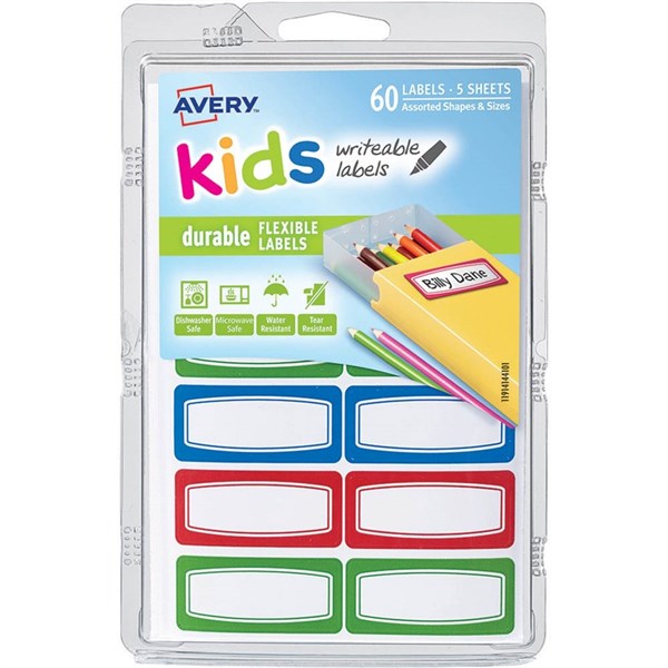 AVERY 41441 KIDS WRITEABLE LABELS RECTANGULAR ASSORTED PACK 60