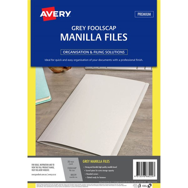 AVERY 88229 MANILLA FOLDER FOOLSCAP GREY PACK 20