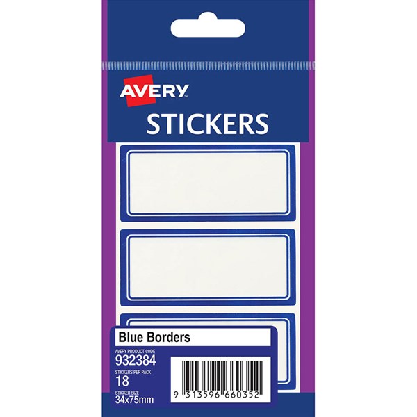 AVERY 932384 MULTI-PURPOSE STICKERS RECTANGLE 34 X 75MM WHITE WITH BLUE BORDER PACK 18