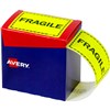 AVERY 932602 MESSAGE LABEL FRAGILE 75 X 99.6MM FLUORO YELLOW PACK 750