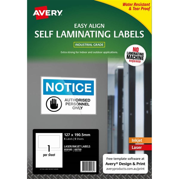AVERY 959185 SELF LAMINATING LABELS 1UP 127 X 190MM PACK 5