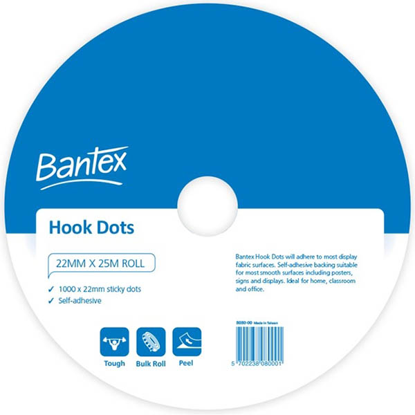 BANTEX HOOK DOTS 22MM X 25M WHITE ROLL 1000