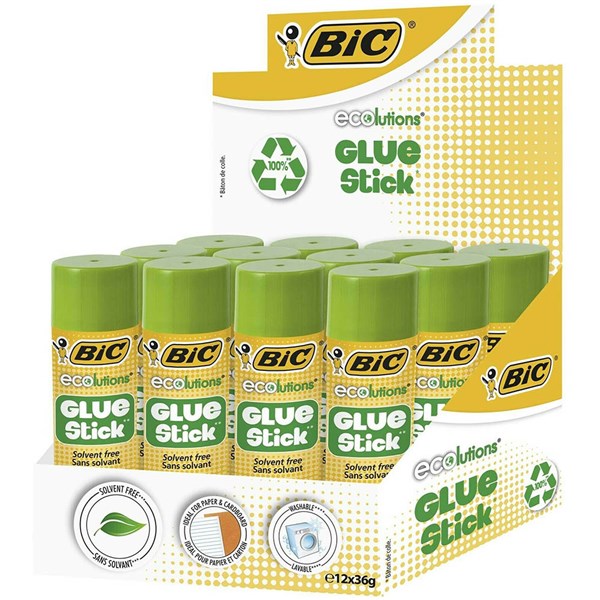 BIC ECOLUTIONS GLUE STICK 36G PACK 12