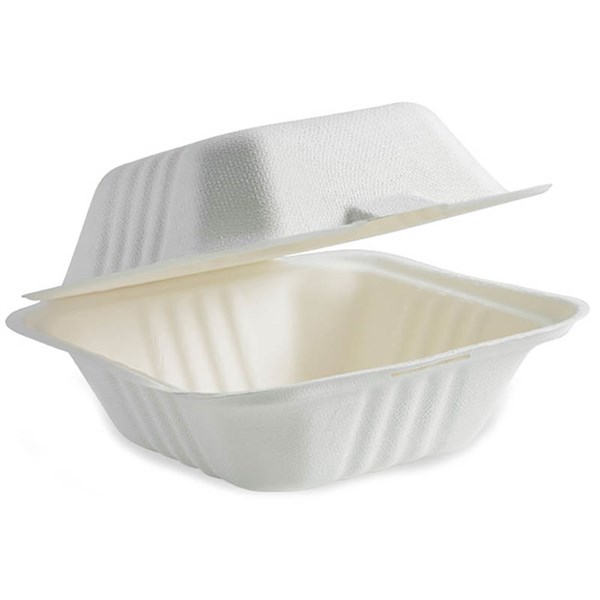 BIOPAK BIOCANE TAKEAWAY CLAMSHELL 150 X 150 X 80MM WHITE PACK 125