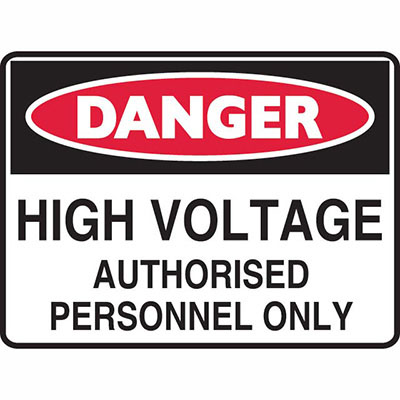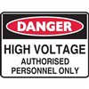BRADY DANGER SIGN HIGH VOLTAGE AUTHORISED PERSONNEL ONLY 450 X 300MM POLYPROPYLENE