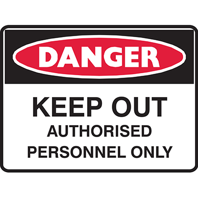 BRADY DANGER SIGN KEEP OUT AUTHORISED PERSONNEL ONLY 450 X 300MM POLYPROPYLENE