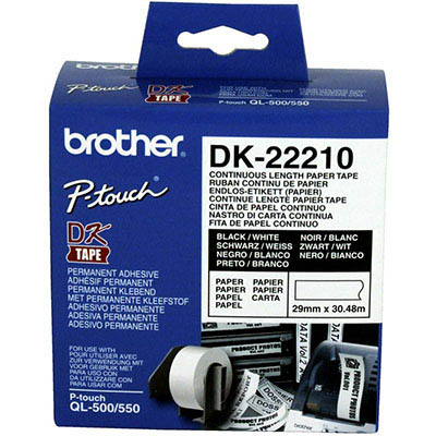- The Brother DK-22210 Continuous Paper Labelling Tape comes complete with strong adhesive for permanent sticking power, so it'll come in useful around both the work and home office