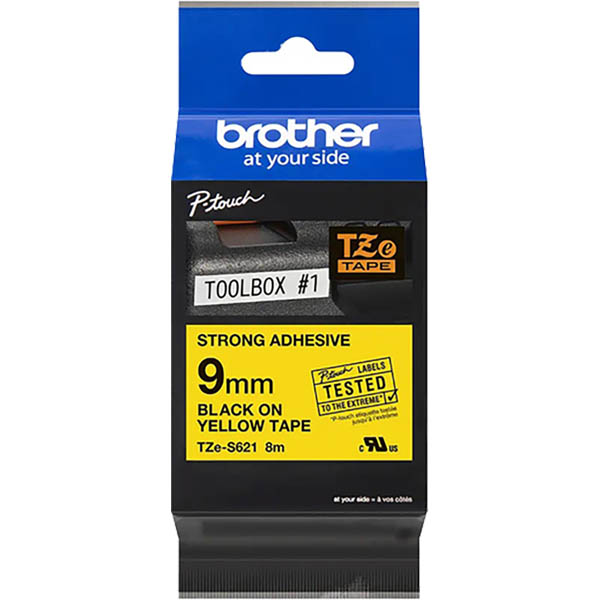 BROTHER TZE-S621 STRONG ADHESIVE LABELLING TAPE 9MM BLACK ON YELLOW