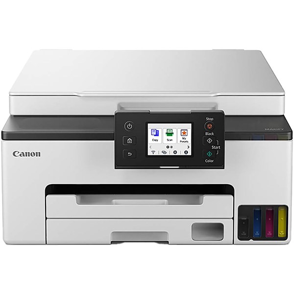 Print, copy & scan Print speed of black 15 ipm, colour 10 ipm High-yield ink bottles Wireless connectivity for wireless printing, and mobile printing via the Canon PRINT app Auto Duplex printing 2.7” Colour touch LCD display with a 45-degree tilt User replaceable maintenance cartridge