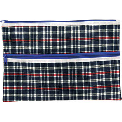 CELCO TARTAN PENCIL CASE 2 ZIP 375 X 264MM