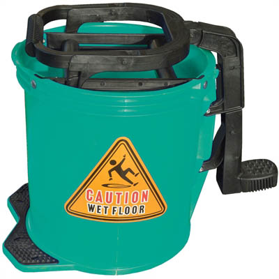 - Featuring a plastic wringing system, non slip foot pedal, rolling castor wheels for easy movements and pouring spout with handle