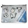 - High quality zippered pouch, made from water-resistant mesh reinforced PVC, with fabric finger loop and fabric-backed metal zip