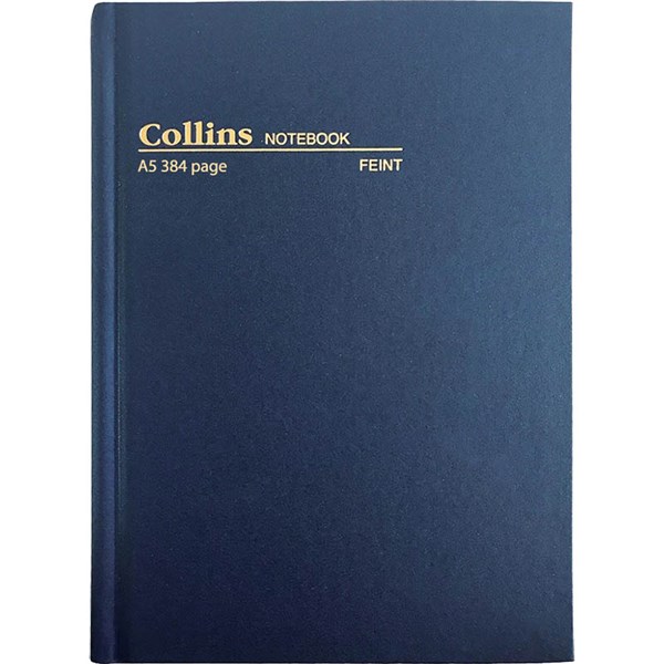 COLLINS CASEBOUND NOTEBOOK FEINT RULLED 384 PAGE A5 BLUE