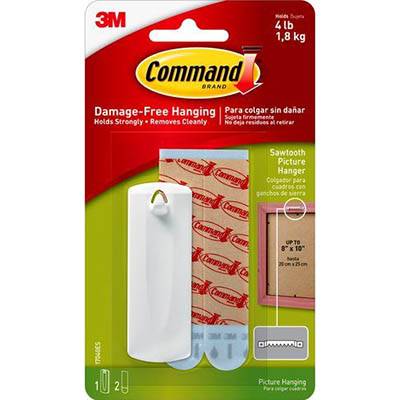 COMMAND ADHESIVE SAWTOOTH PICTURE HANGER WHITE PACK 1 HANGER AND 2 STRIPS