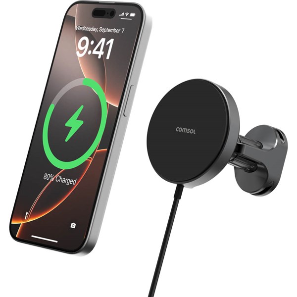 The Comsol Qi2 Magnetic Wireless Car Charger Vent/Dash Black WCQ2CM is designed to provide convenient magnetic wireless charging for Qi2-enabled smartphones while driving