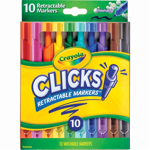 CRAYOLA CLICKS RETRACTABLE WASHABLE MARKERS ASSORTED PACK 10