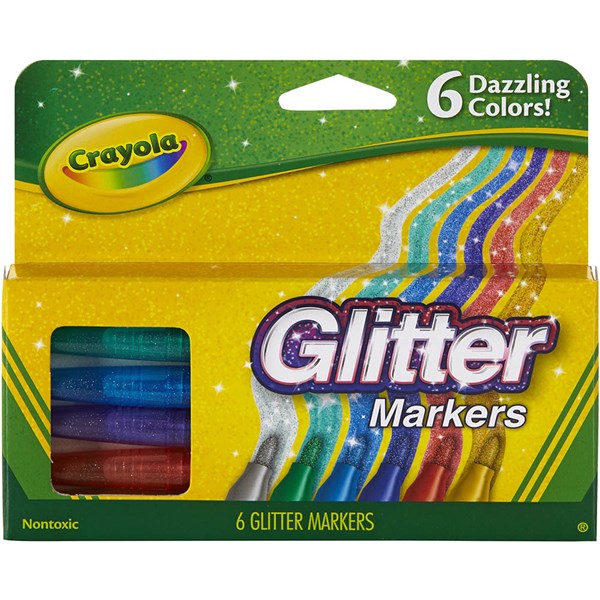 CRAYOLA GLITTER MARKERS ASSORTED PACK 6