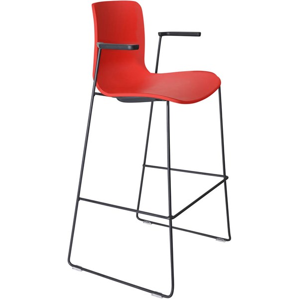 DAL ACTI BAR STOOL SLED BASE HIGH 760MM ARMS BLACK ARM-PADS AND BLACK POWDERCOAT FRAME RED POLYPROP SHELL