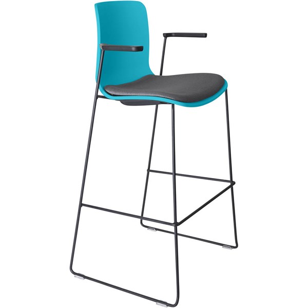 DAL ACTI BAR STOOL SLED BASE HIGH 760MM ARMS BLACK ARM-PADS AND BLACK POWDERCOAT FRAME TEAL POLYPROP SHELL