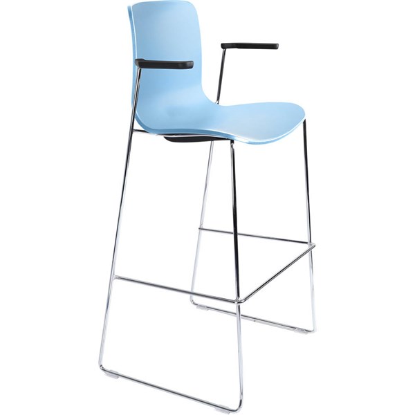 DAL ACTI BAR STOOL SLED BASE HIGH 760MM ARMS BLACK ARM-PADS AND CHROME FRAME PALE BLUE POLYPROP SHELL