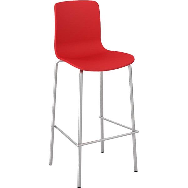 DAL ACTI CHAIR 4-LEG HIGH BARSTOOL CHROME FRAME RED SHELL