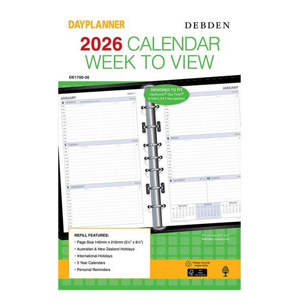 • All Debden DayPlanner refills have universal hole punching to fit most organisers