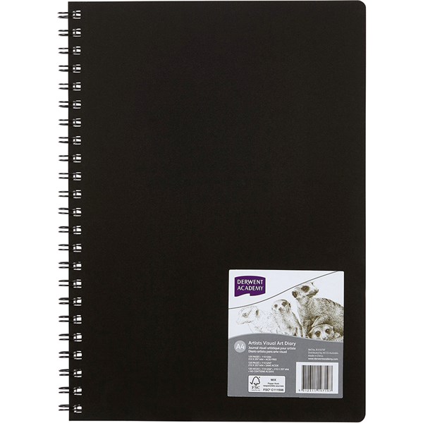 DERWENT ACADEMY VISUAL ART DIARY PORTRAIT 120 PAGE A4 BLACK