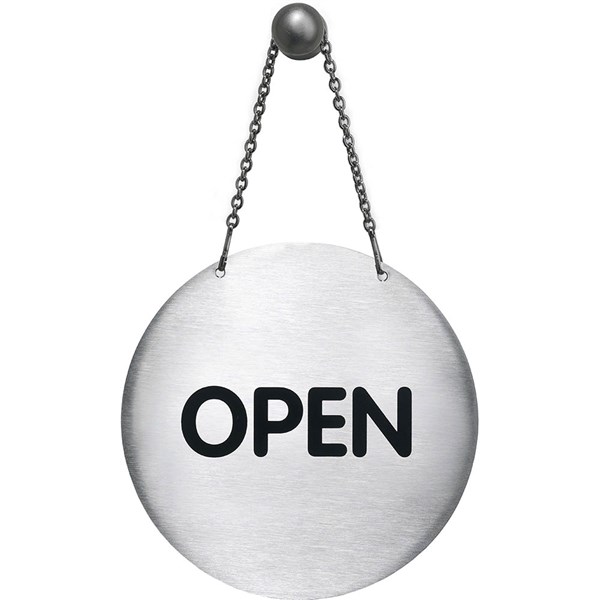 DURABLE PICTOGRAM SIGN OPEN/CLOSED WITH CHAIN 130MM STAINLESS STEEL