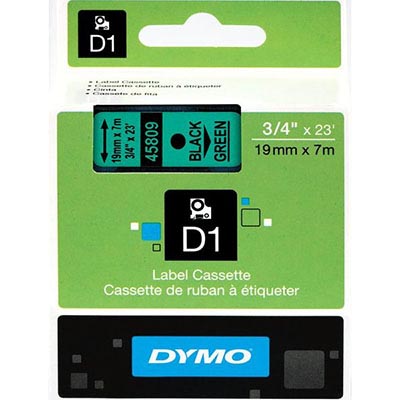 DYMO 45809 D1 LABELLING TAPE 19MM X 7M BLACK ON GREEN