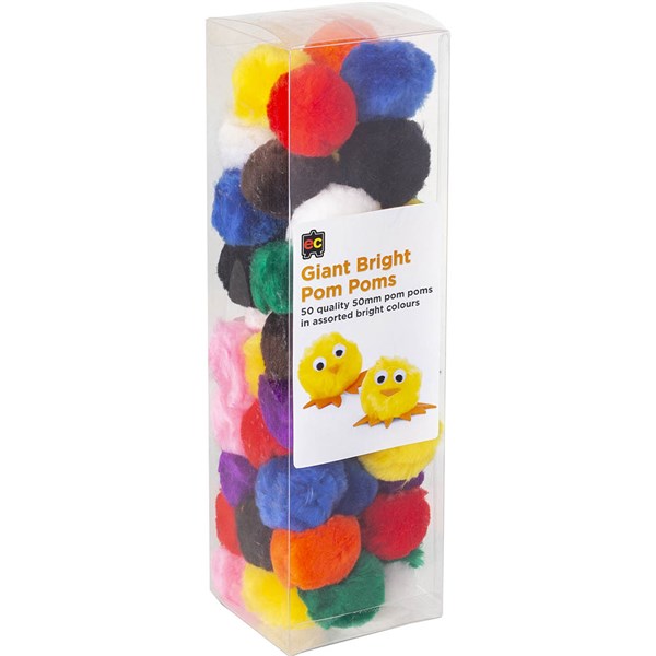 EDUCATIONAL COLOURS POM POMS 50MM BRIGHT ASSORTED PACK 50
