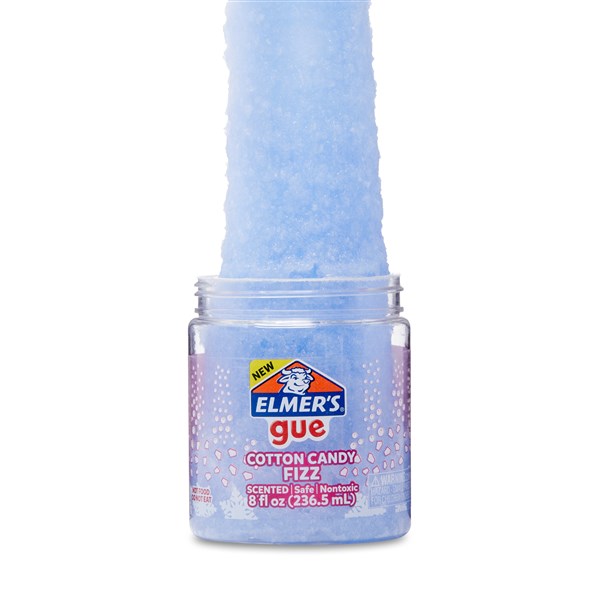 Put away the mixing bowls and spatulas and discover the fun of Elmer’s Gue! It’s a premade slime that comes ready to play with right out of its slime container. Enjoy the sweet scents of Cotton Candy Fizz with this batch. And its safe, non-toxic formula makes it great for kids! Stretch it, squish it, twist it; explore all the fun ways to play with Elmer’s Gue!