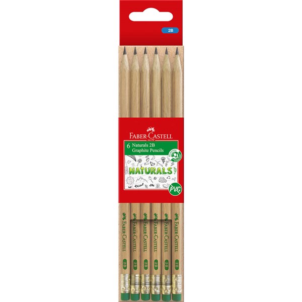 FABER-CASTELL NATURAL GRAPHITE PENCILS WITH ERASER TIP 2B PACK 6