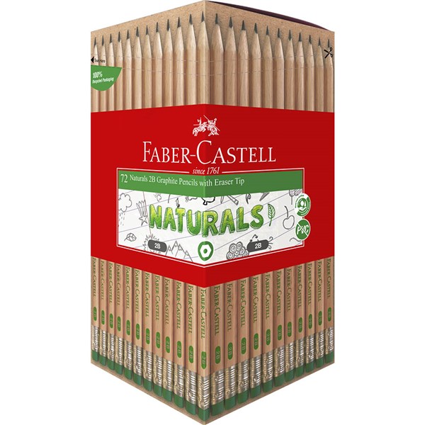 FABER-CASTELL NATURAL GRAPHITE PENCILS WITH ERASER TIP 2B PACK 72