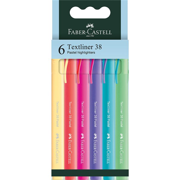 FABER-CASTELL TEXTLINER 38 PASTEL HIGHLIGHTERS ASSORTED PACK 6