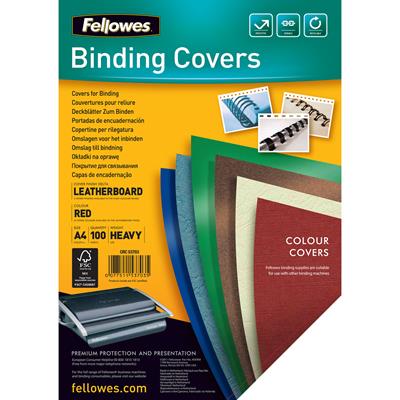 FELLOWES BINDING COVER LEATHERGRAIN 230GSM A4 RED PACK 100