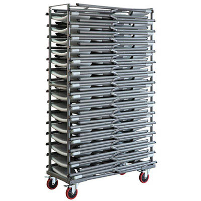 Sturdy steel frame trolley built to last for easy storage of folding chairs