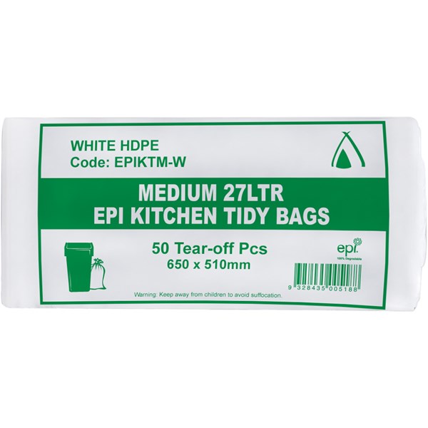HUHTAMAKI HDPE BIN LINER EPI 27 LITRE WHITE PACK 50
