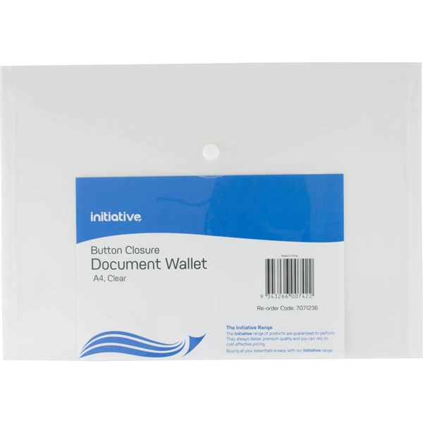 INITIATIVE DOCUMENT WALLET WITH BUTTON A4 CLEAR