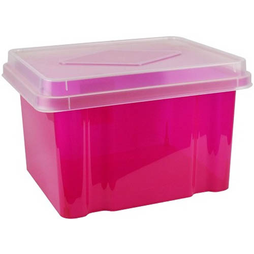 ITALPLAST FILE STORAGE BOX 32 LITRE TINTED PINK/CLEAR LID