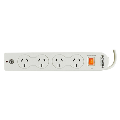 ITALPLAST POWER BOARD 4 OUTLET WITH MASTER SWITCH, SURGE AND OVERLOAD 1M WHITE
