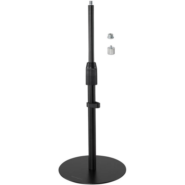 - Mounting solution for microphones, webcams, and lighting systems (3/8 inch screw mount; 1/4 inch and 5/8 inch adaptors included)