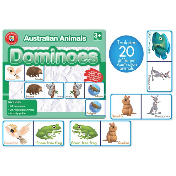 • Includes: 40 dominoes, 20 Australian animals, and activity guide
