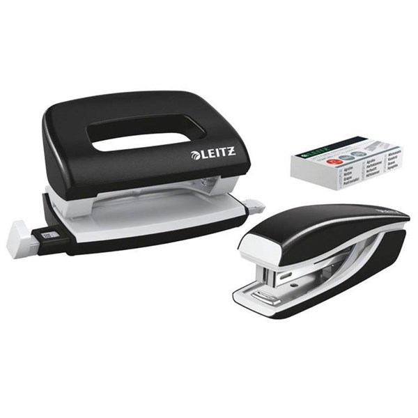 LEITZ NEXXT WOW STAPLER AND PUNCH SET MINI BLACK