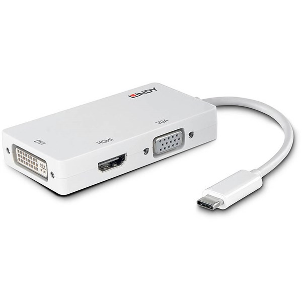 The Lindy USB Type C to Triple Display Converter allows users to connect either an HDMI, DVI or VGA screen to a Macbook, ultrabook or notebook with USB DisplayPort Alternate Mode. With its lightweight, low profile design, the adapter easily fits into a notebook bag and simply expands any available connectivity options, so users can connect to the most commonly used digital and analogue video equipment, without having to carry multiple adapters - ideal for BYOD applications