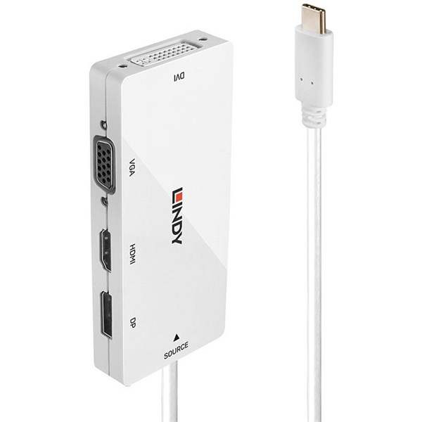• The Lindy USB Type C to Multi-AV Converter connects either an HDMI, DisplayPort, DVI or VGA display to a Macbook, Ultrabook or Notebook with USB DisplayPort Alternate Mode